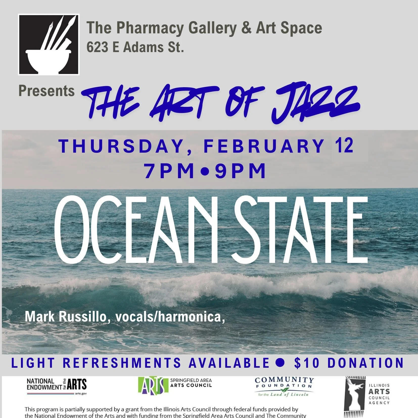 This program is partially supported by a grant from the Illinois Arts Council through federal funds provided by the National Endowment of the Arts and with funding from the Springfield Area Arts Council and The Community Foundation of the Land of Lincoln.