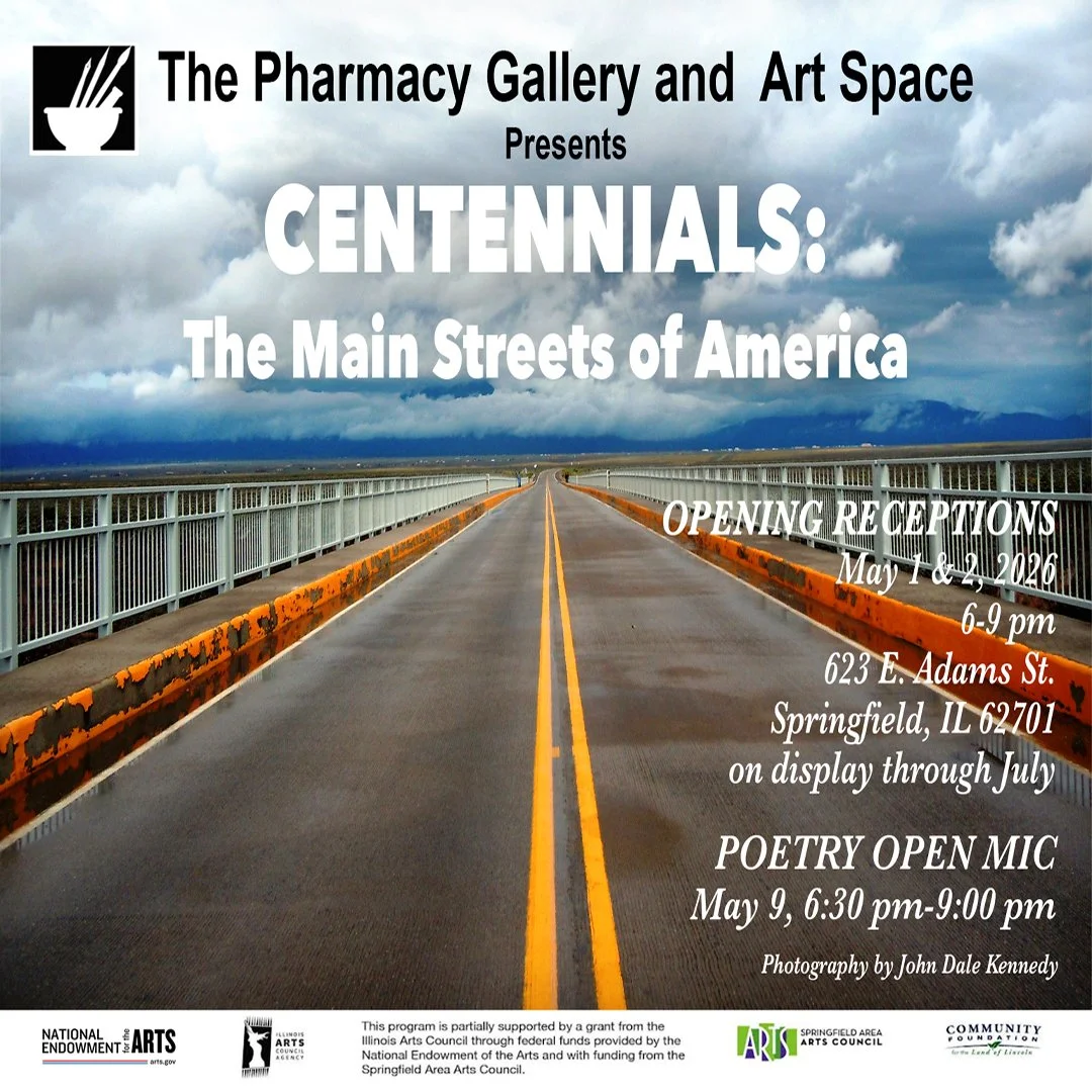 CENTENNIALS:THE MAIN STREETS OF AMERICA, is the theme of our quarterly members contemporary art show. Great art representing the theme, and more, also check out the Bob Waldmire and David Schwartz, representations of Route 66 as they celebrate the Route 66 Centennial.